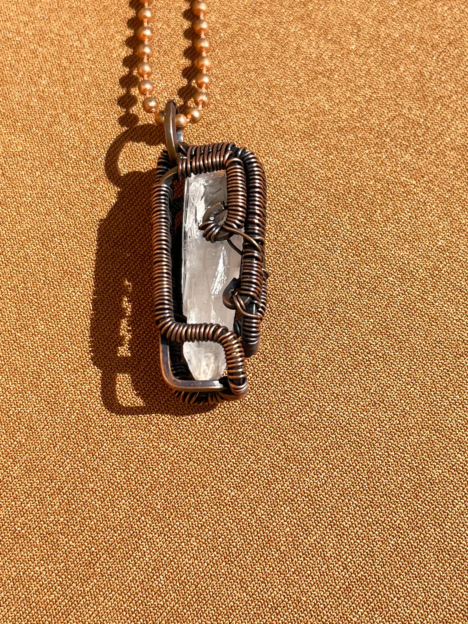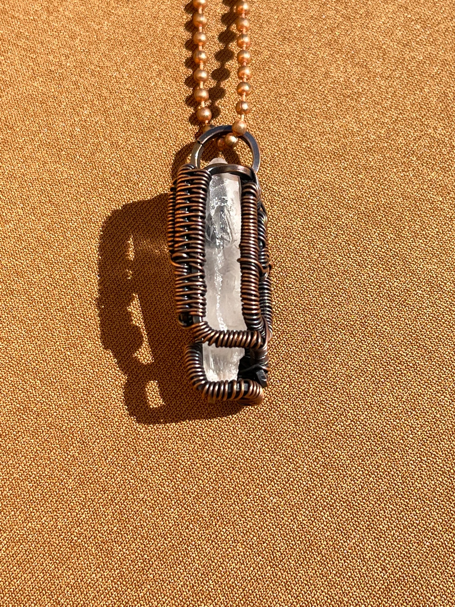 Clear Quartz Antique Copper Wire Wrapped Pendant