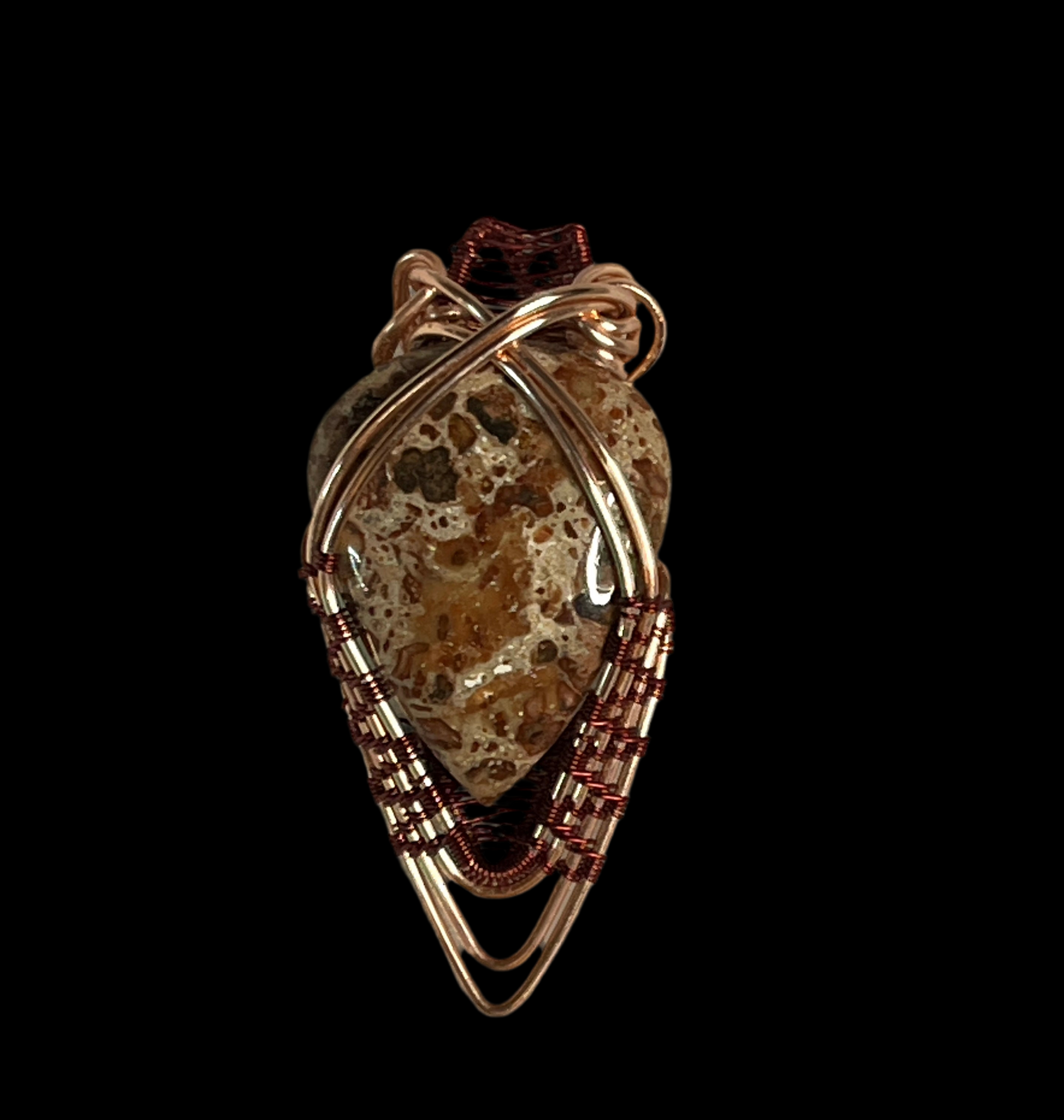 Rose Gold and Burgundy Wrapped Jasper Pendant